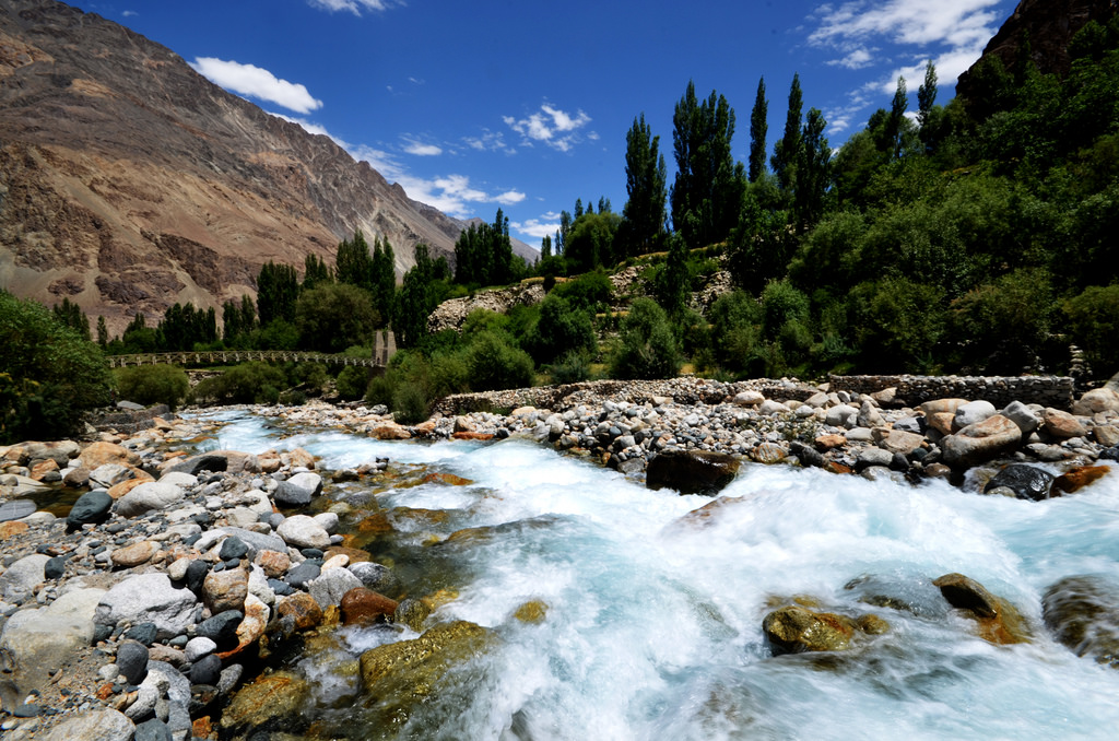 The Suru Valley is a picturesque location at the catchment area of the Suru River, which is an important tributary of the Indus. The beauty of the lush green surroundings of this region are heightened by comparison to the pale Himalayan glaciers. The multitude of apple, apricot and mulberry trees here are a sight to behold in an otherwise vegetation-starved region of the country. Suru Valley is a popular trekking destination with Sankoo, Panikhar, Rangdum and Padum in the Suru and Zanskar Valleys being bases for various trekking routes.